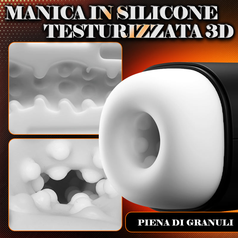 - Manicotto Realistico Testurizzato 3D — Particelle nodose massaggiano tutt'intorno, ricreando un tocco carnoso realistico.